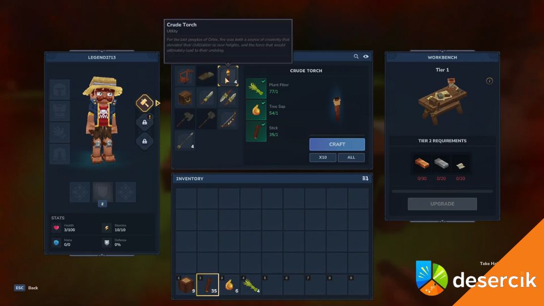 - Warsztat pozwala na craftowanie lepszych narzędzi, co przyspiesza zbieranie drewna i kamienia.