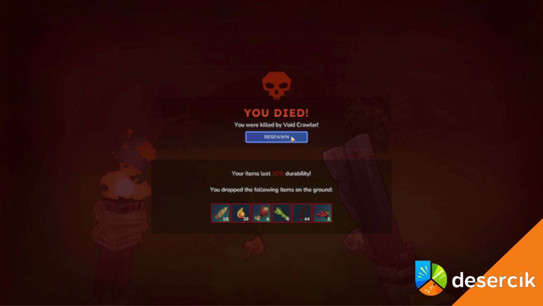 Sprzęt szybciej się niszczy – Każda śmierć oznacza, że narzędzia, broń i pancerz tracą część swojej wytrzymałości. Dokładnie 10%. Kilka takich wpadek i nawet solidny ekwipunek zaczyna się sypać.