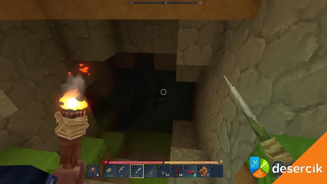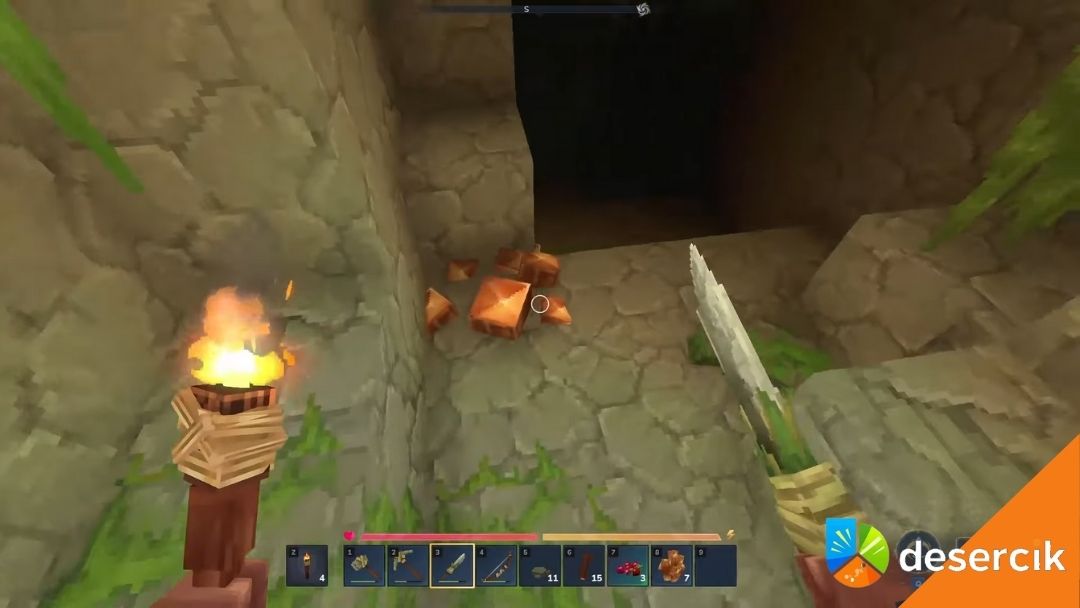 Teoretycznie możesz wykopać szyb pionowo w dół tuż obok swojej bazy, ale na początku lepszym rozwiązaniem są naturalne jaskinie. Prymitywny kilof bardzo wolno radzi sobie z kamieniem i kopanie własnej kopalni zajmuje sporo czasu. Jaskinie pozwalają szybciej dotrzeć do rudy i oszczędzają wytrzymałość narzędzi.