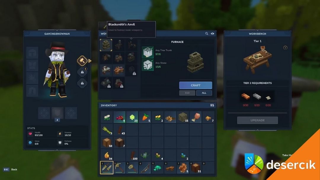 Piec tworzysz na Warsztacie Poziomu 1, czyli pierwszym stole rzemieślniczym w grze. Sam warsztat robisz z: