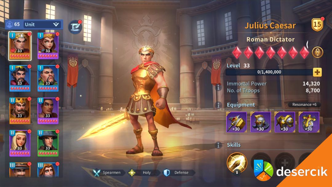 Nieśmiertelni to legendarne postacie znane z historii, mitologii i literatury. Możesz zwerbować takie postaci jak Cleopatra, Lancelot czy Helen of Troy, aby dowodzili twoimi wojskami. Każdy z nich ma własne umiejętności, styl walki oraz rolę na polu bitwy, dlatego odpowiedni dobór drużyny ma ogromne znaczenie.