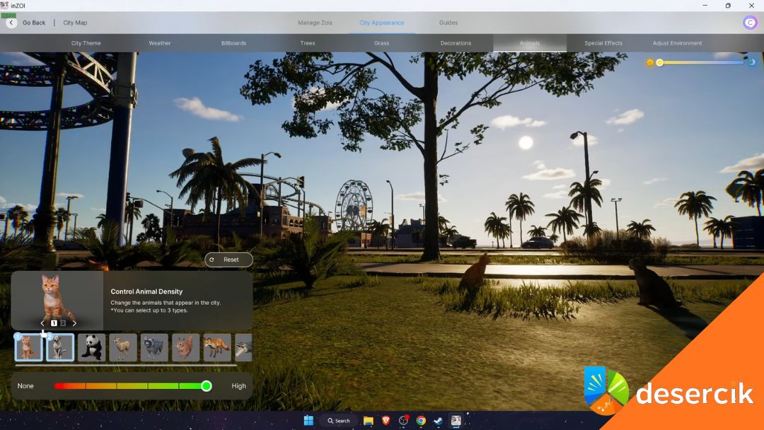 Chociaż adopcja nie działa, to miasto może być pełne zwierząt, jeśli tylko ustawisz ich obecność. Gra pozwala dodać maksymalnie trzy gatunki jednocześnie. Do wyboru masz m.in. koty, psy, wiewiórki, jelenie i kilka innych stworzeń, które będą kręcić się po publicznych miejscach. Co prawda nie zabierzesz ich do domu, ale przyjemnie jest wpaść w parku na kota przeciągającego się na ławce.