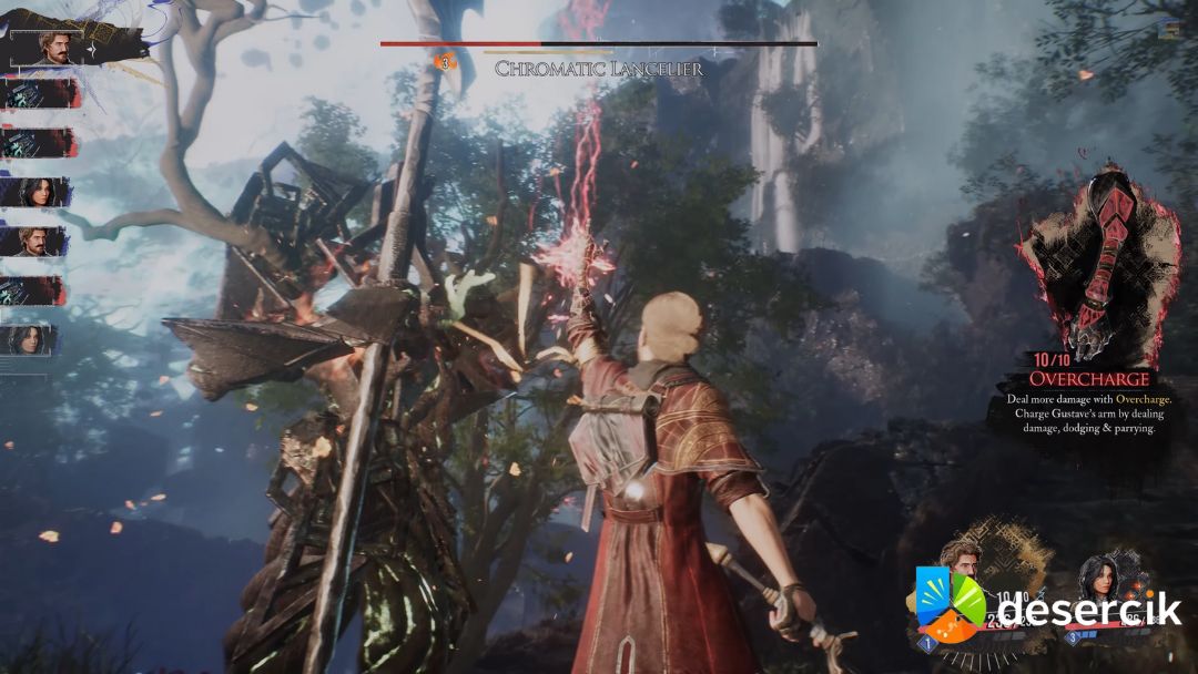 - Wykorzystaj Overcharge – jeśli walczysz niskopoziomową drużyną, np. z Gustave, użycie Overcharge przy pełnych ładowaniach pozwala zadać masę obrażeń i przebija się przez ogromny pasek życia bossa.