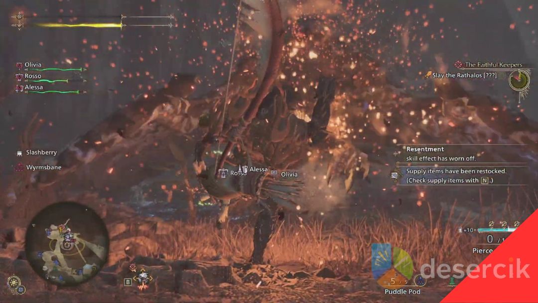 Należy pamiętać, że Rathalos nie zawsze jest samotny. Czasami w regionie może pojawić się Rathian, partnerka Rathalosa, która dołącza do walki, zwłaszcza gdy boss wraca do gniazda.