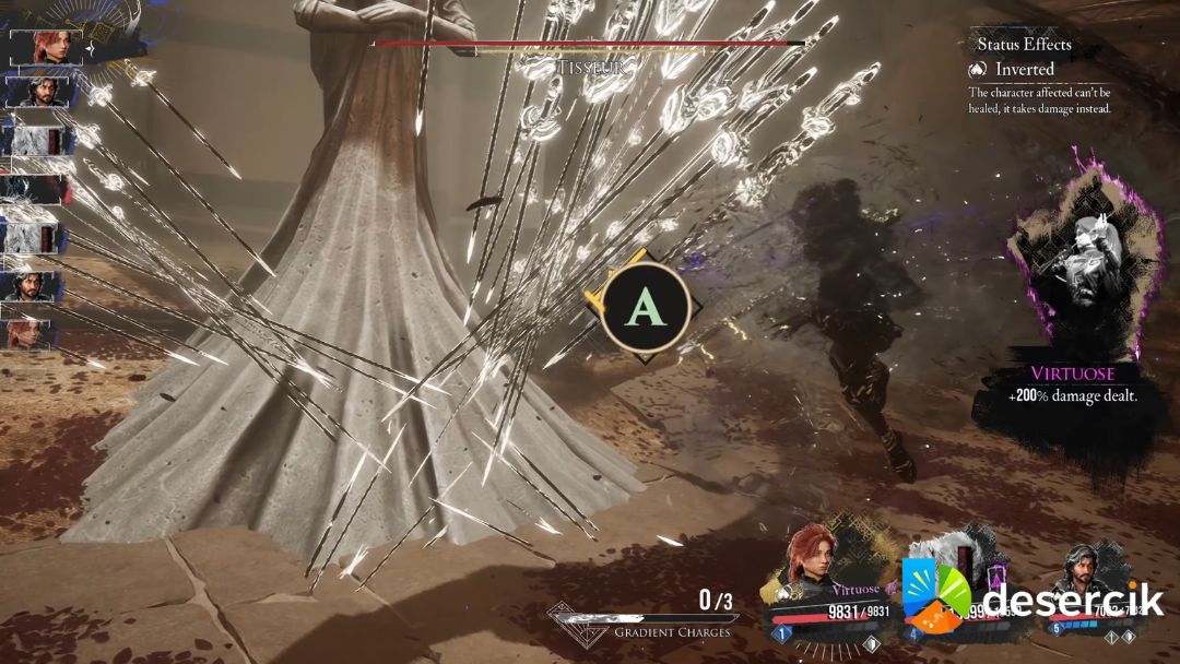 Druga rzecz to PA (Punkty Akcji). Kończenie walki z pustymi PA jest gwarancją, że Tisseur cię zajedzie. Traktuj te punkty jak paliwo: nie marnujesz ich na ruchy, które wyglądają efektownie, ale nic nie robią. Oszczędzaj je na momenty, kiedy boss się odsłania, albo wtedy, gdy przygotowuje coś grubszego.