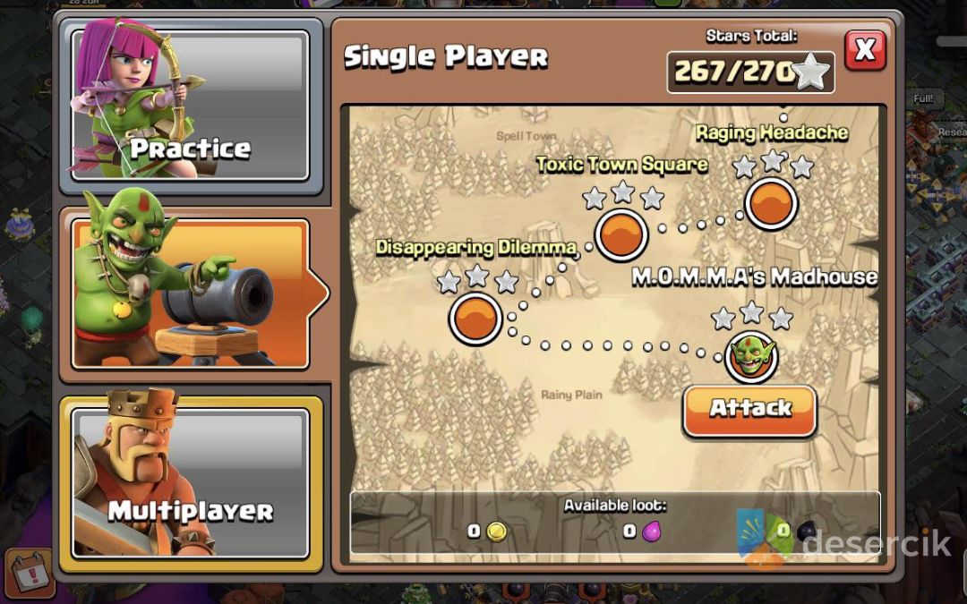 Aktualnie kampanie obejmują 50 poziomów, z czego każdy ocenia się w skali do 3 gwiazdek – co daje łącznie 150 możliwych gwiazdek. Zdobywając je wszystkie odblokujesz osiągnięcie „Get those Goblin!” i otrzymasz dodatkowe 35 diamentów, co choć niewielkie, to jednak przyjemnie zaokrągla cały farming kampanii.