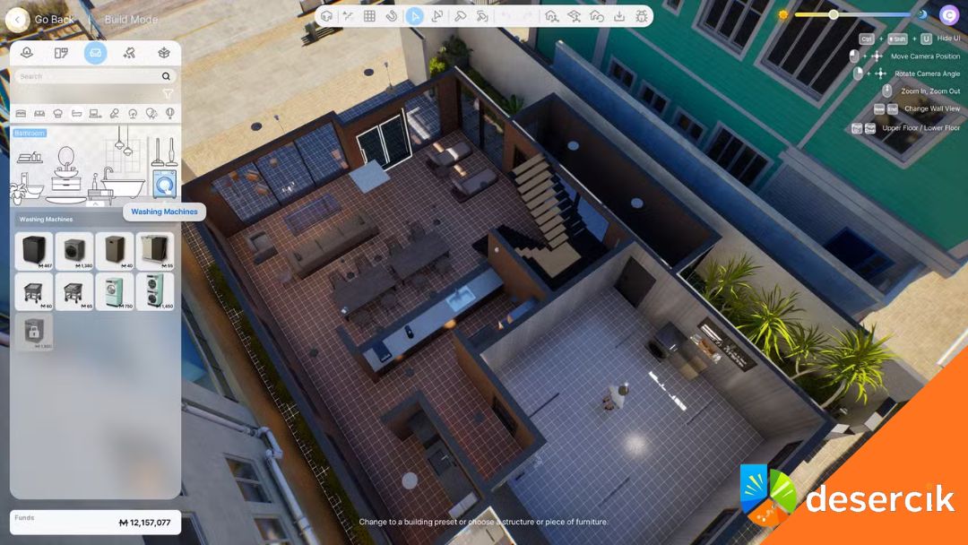 - W trybie budowy przejdź do „Urządzenia łazienkowe” i wybierz pralkę.