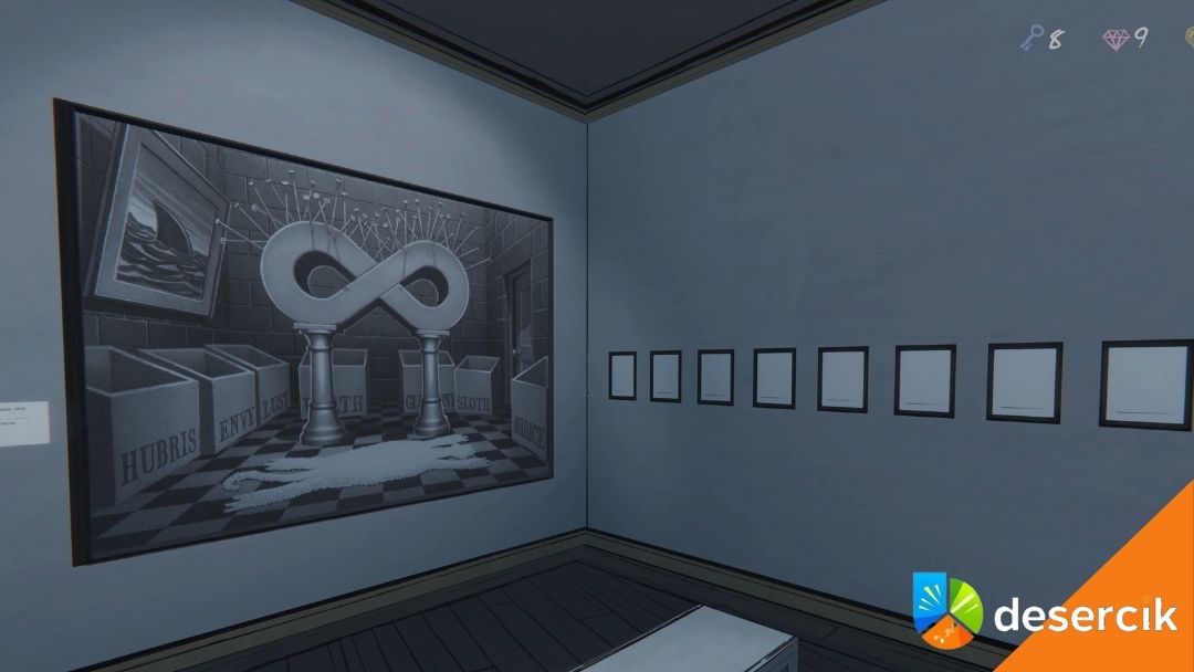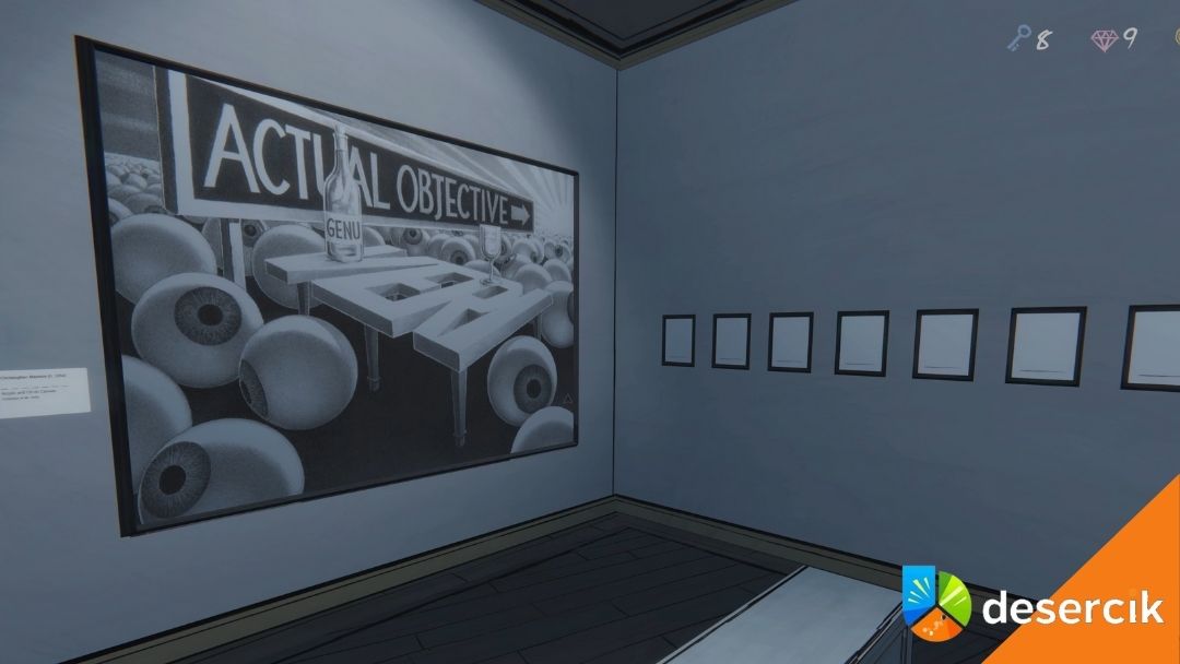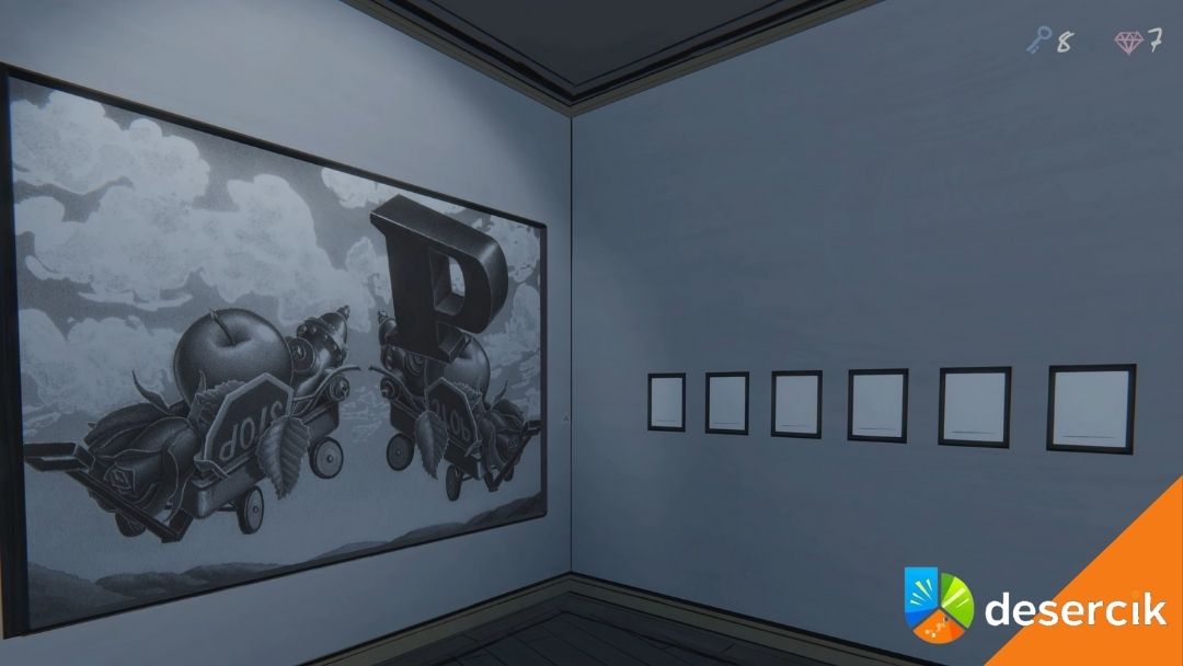 W galerii znajdziesz cztery obrazy autorstwa Christophera Mansona, ale co ciekawe, żaden z nich nie ma przypisanego tytułu. Twoim zadaniem jest poprawnie nazwać każdy z obrazów, żeby odblokować dwa skarbczyki w centrum pokoju, a przy okazji zdobyć dostęp do Pokoju 8, który jest jednym z ważniejszych elementów eksploracji rezydencji.