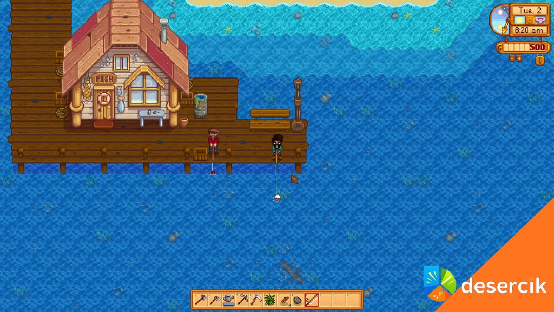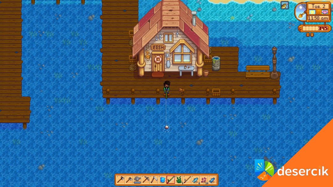 Zaczynasz z prostą Bambusową Wędką, którą dostajesz od Willy’ego. Na początku nie jest łatwo – wędkowanie z nią wymaga cierpliwości. Później warto ulepszać sprzęt: