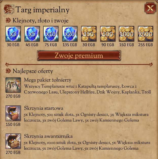 Na Targu Imperialnym możemy kupić klejnoty za prawdziwe pieniądze, ale traktujcie to jako rozwiązanie ostatecznie. Moim zdaniem szkoda wydawać kasę na tego rodzaju gry.