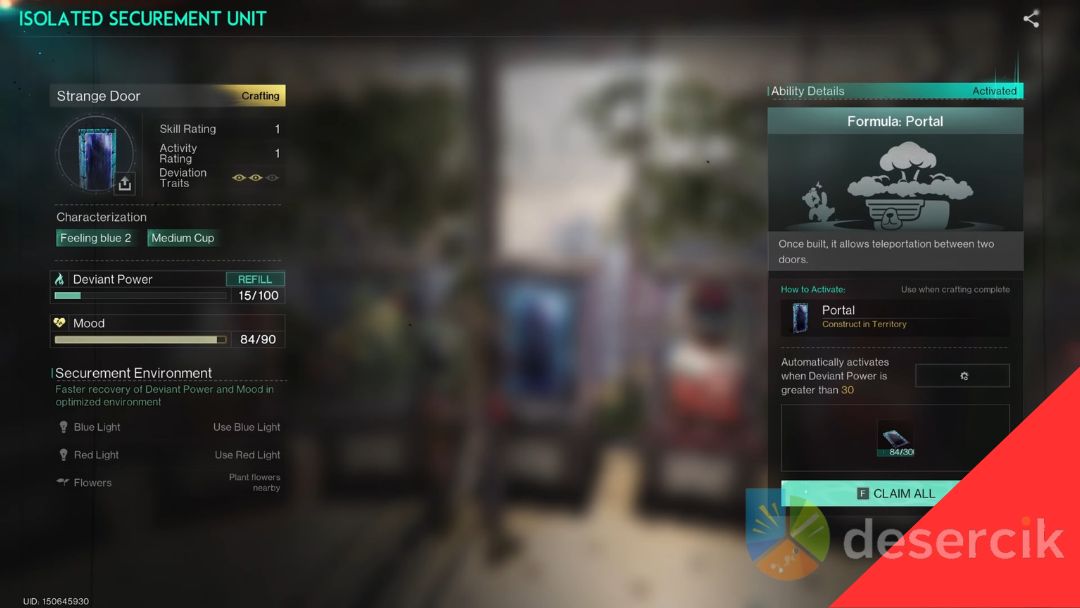 - Podobnie jak u innych deviantów typu Artisan’s Touch, Strange Door nie zajmuje się niczym innym niż produkcja materiałów, więc nie warto trzymać go w Securement Container zbyt długo.