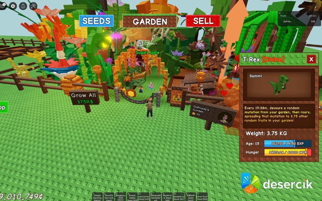 Efekt? Jedna dobra mutacja, np. zwi臋kszaj膮ca warto艣膰 lub szybko艣膰 wzrostu, mo偶e zosta膰 sklonowana na wiele innych ro艣lin. To czyni T-Rexa jednym z najbardziej przydatnych pupili do hodowli i zarabiania Szekli, poniewa偶 mo偶e w kr贸tkim czasie zmieni膰 tw贸j ogr贸d w prawdziw膮 kopalni臋 z艂ota.