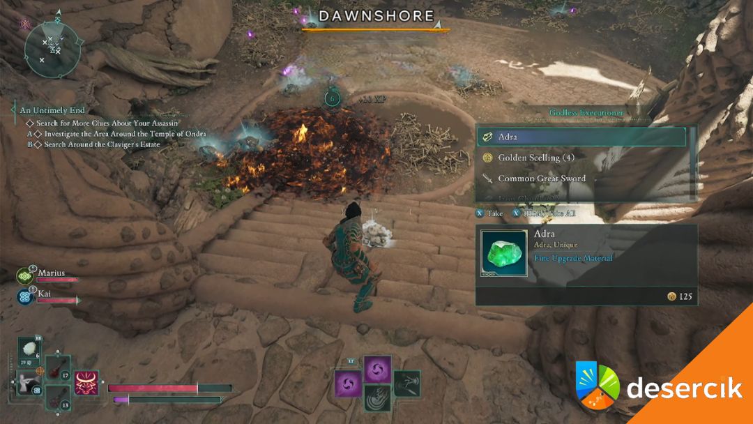 W Dawnshore naprawdę opłaca się zrobić wszystkie zlecenia. Wielu bossów ma Adrę przy sobie albo pilnuje skrzyni, w której się ona znajduje. W kolejnych regionach nadal da się ją lootować, ale z każdą nową mapą staje się coraz rzadsza.