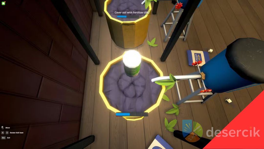 Wybierz butelkę nawozu z ekwipunku. Podejdź do dowolnej doniczki lub pojemnika z rośliną. Nad doniczką pojawi się butelka – pochyl ją, aby rozpocząć podlewanie. Obracaj butelkę wokół doniczki, aby ziemia została równomiernie nawożona.