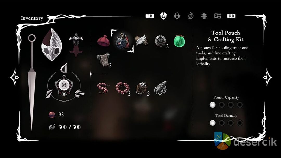Każdy taki zestaw wpływa na wskaźnik Tool Damage w ekwipunku – widoczny jako cztery białe kółka. Crafting Kit Expanded podnosi ten poziom do dwóch kręgów, co oznacza, że Twoje ataki narzędziami będą od tej pory skuteczniejsze i szybciej eliminują wrogów.