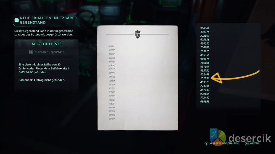 Kobieta wyjaśnia, że kod bramy zmienia się codziennie, ale w danym dniu jest to 14. kombinacja z listy, którą znajdziesz pod fotelem pasażera APC, którym się poruszałeś.