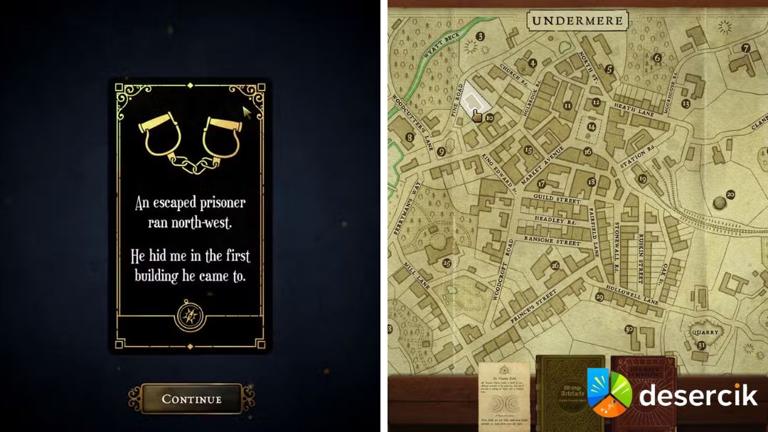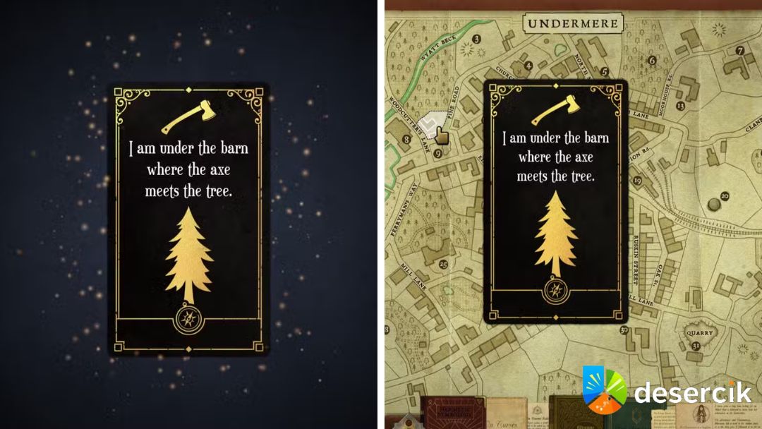 Tutaj pojawia się już wyższy poziom trudności. Mapa Undermere bywa myląca – zwłaszcza jeśli chodzi o drzwi w budynkach. Wskazówka wspomina o „uciekinierze z więzienia”, co od razu kieruje nas do The Old Jail (nr 10). Dalej mamy kierunek „north-west” – wystarczy spojrzeć na kompas w rogu mapy. Ostatnia część mówi o „pierwszym budynku, do którego dotarł”. Jeśli pójdziesz dosłownie na północny zachód, pierwszy budynek, jaki zobaczysz, skrywa poszukiwany przedmiot.