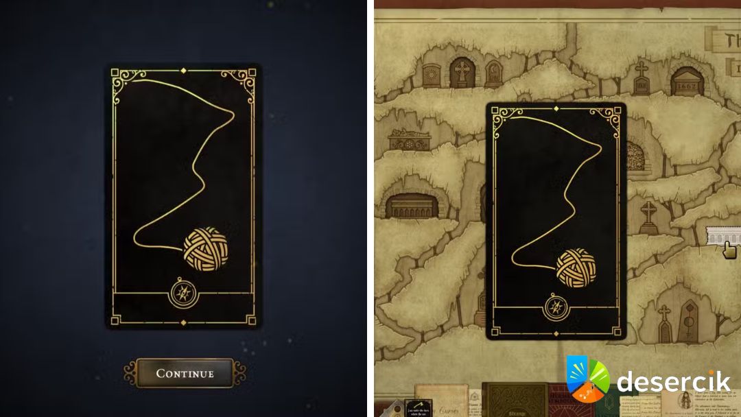 Na karcie widnieje kłębek włóczki – i tu wielu graczy daje się zmylić. To nie włóczka jest istotna, tylko kształt, jaki tworzy. Pasuje on do jednego z nagrobków z pięcioma okienkami.