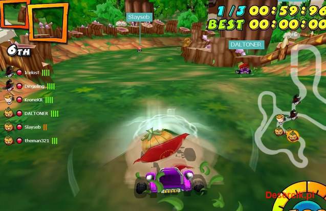 Fani takich wyścigów, którzy znudzili się samochodowymi zmaganiami czeka tutaj masa dobrej zabawy w kolorowym świecie pełnym pułapek i niebezpieczeństw. Jeśli uważamy się za dobrych kierowców, to na pewno nie będzie tutaj problemów z utrzymaniem się na torach podczas kolejnych driftów. W Kart N’Crazy sterujemy głównie za pomocą klawiatury, ale do strzelania lepiej używać myszki, w sumie nie tyle lepiej co wygodniej.