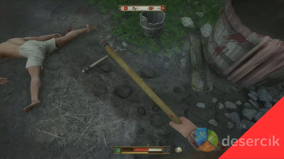 Pierwszym zadaniem jest pochówek bandyty, który leży na podwórku. Możesz go zignorować, ale warto poświęcić chwilę, by go pochować – nie tylko z moralnego obowiązku, ale też dla immersji w świecie gry. Znajdź szpadel, przetransportuj ciało poza główną furtkę i wykop grób – gest prosty, ale satysfakcjonujący, który dodaje grze życia. Co ciekawe, w średniowieczu nawet wrogowie byli chowani z szacunkiem, co Kingdom Come świetnie oddaje.