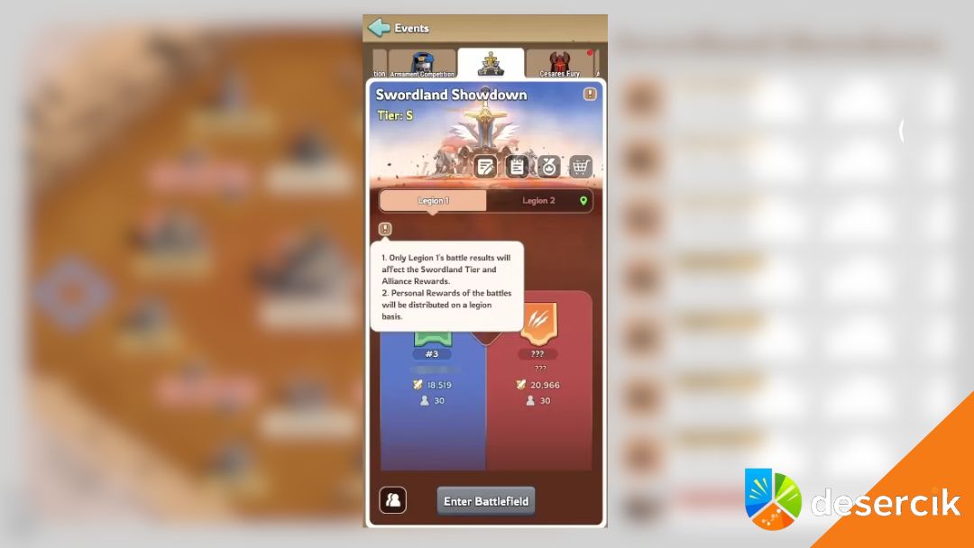 Udział biorą wyłącznie najsilniejsze sojusze sezonu, co gwarantuje wysoki poziom rywalizacji. Każdy sojusz może wystawić maksymalnie dwie Legie, z których każda liczy 30 walczących oraz 10 rezerwowych. Gracz może należeć tylko do jednej Legii, a nagrody sezonowe zależą od wyniku Legii nr 1, więc to ona jest kluczową drużyną.