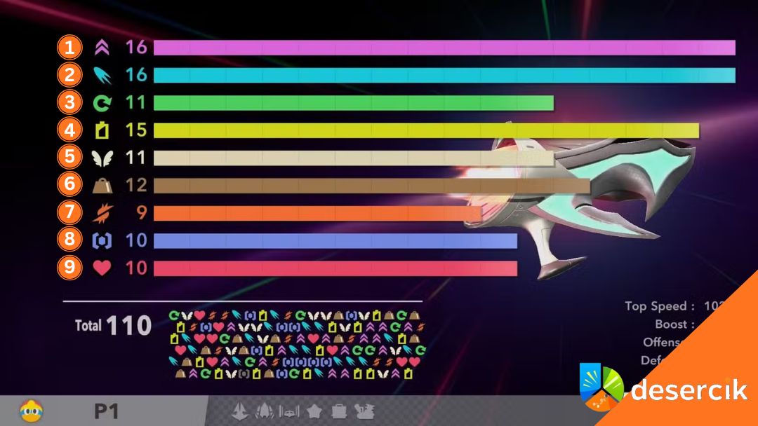 Nie chodzi tylko o zbieranie wszystkich statów i zostanie totalnym powerhouse. Trzeba działać strategicznie – zbyt dużo w jednej statystyce może zepsuć balans. Na przykład zbyt wysoki Top Speed na Turbo Star może utrudnić kontrolę, a brak Weight w Scooter Bike sprawi, że będzie niestabilny.