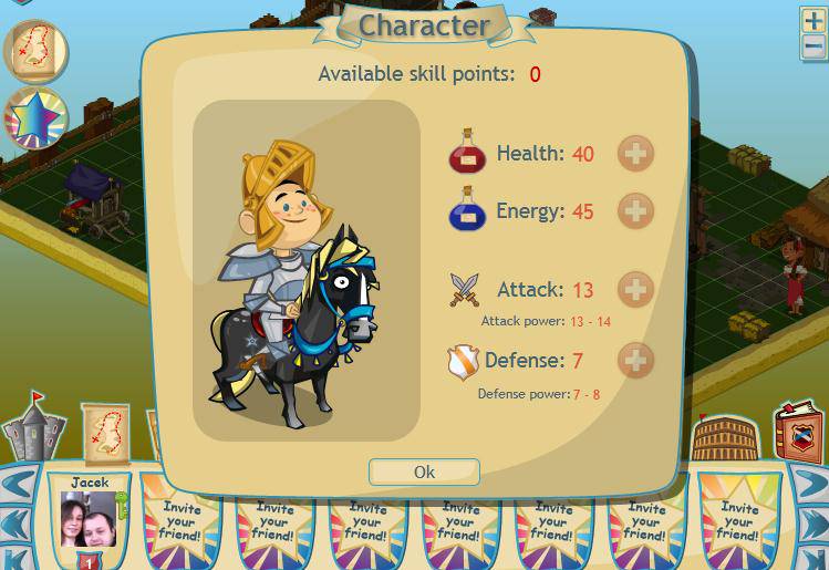 Oczywiście jak w każdym RPG nie może zabraknąć rozwijania cech naszej postaci. Tak samo jest tutaj w miarę zdobywania doświadczenia mamy do rozdania konkretną ilość punktów umiejętności, które wzmacniają naszą postać. Jest jeszcze jeden ciekawy budynek jaki możemy zbudować, jest to arena. Po to rozdajemy punkty w naszych statach aby w przyszłości po wybudowaniu areny móc zmierzyć się w walce z innymi graczami. Grafika jest znośna jak na grę przeglądarkową więc polecam zapoznanie się z produkcją.