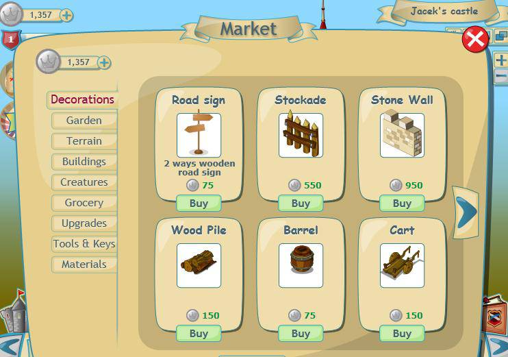 Zarobione złote monety możemy wydać na rozbudowę naszego zamku. Każdy budynek budujemy od podstaw i wydawać na to musimy sporo gotówki jednak przynoszą one znaczące profity więc sądzę, że warto zainwestować aby później zarobić więcej. Podczas eksploracji każdy ruch kosztuje nas jeden punkt energii, a zebrać ich możemy maksymalnie 45. Odnawiają się co parę minut więc nie ma strachu, jednak to zabezpiecza przed nadmiernemu rozwojowi. Dlatego też nie musisz siedzięć 24/24 przy grze bo każdy ma równe szanse.