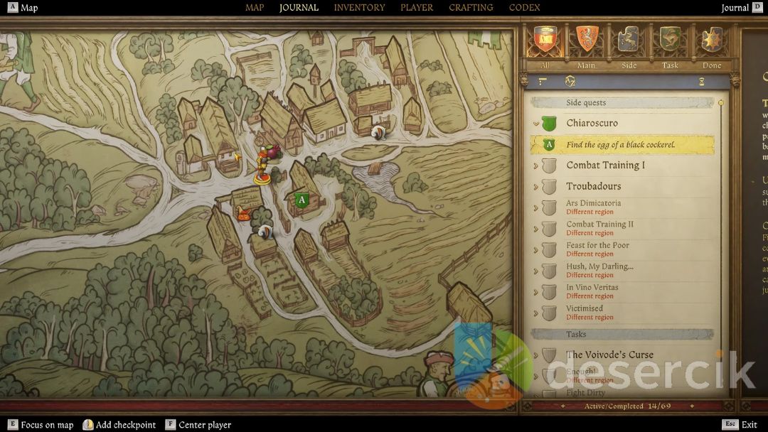 Aby odblokować „Chiaroscuro”, musisz najpierw ukończyć inne zadanie Wojciecha – „Źródło inspiracji”. Po jego zakończeniu porozmawiaj ponownie z malarzem w zamku Troski, a otrzymasz kolejne polecenie.