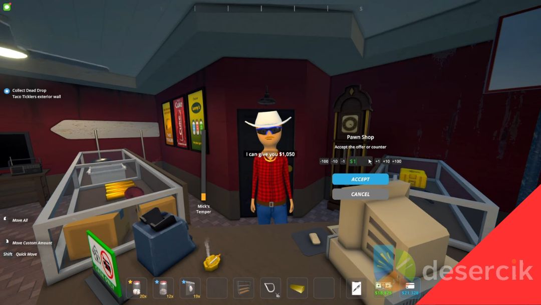 W Schedule 1 aktualizacja z 10 kwietnia 2025 wprowadziła do Hyland Point nowy Lombard prowadzony przez Micka Lubbina. To spora zmiana dla graczy, bo już nie trzeba wyrzucać starych przedmiotów czy sprzętu zalegającego w ekwipunku. Teraz można udać się do Lombardu i spróbować odzyskać część wydanych pieniędzy, negocjując z Mickiem cenę swoich rzeczy.