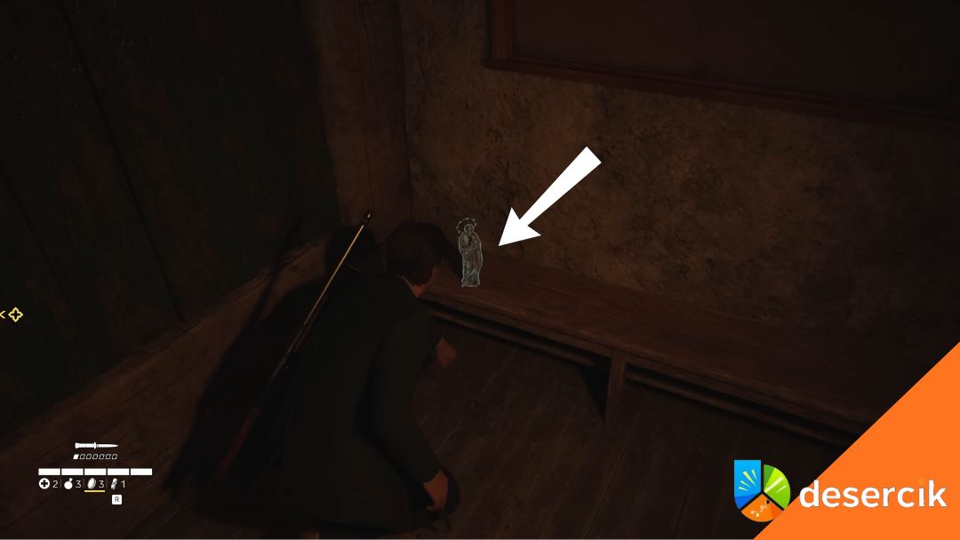 Na środku stołu w tym pomieszczeniu leży talizman Pragmatico, który poprawia celność przy strzelaniu z biodra lub zza osłony. Warto go zabrać.