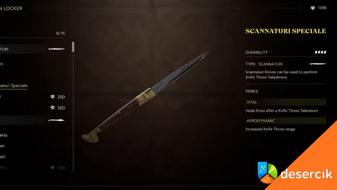 Dzięki tym nożom możesz zabić wroga z dystansu. Gra wskaże cel i odpowiedni przycisk, kiedy throw jest możliwy. Gracze, którzy zakupili grę wcześniej, dostają od razu Scannaturi Speciale, który dodatkowo leczy Enzo po zabójstwie nożem i zwiększa zasięg rzutu.