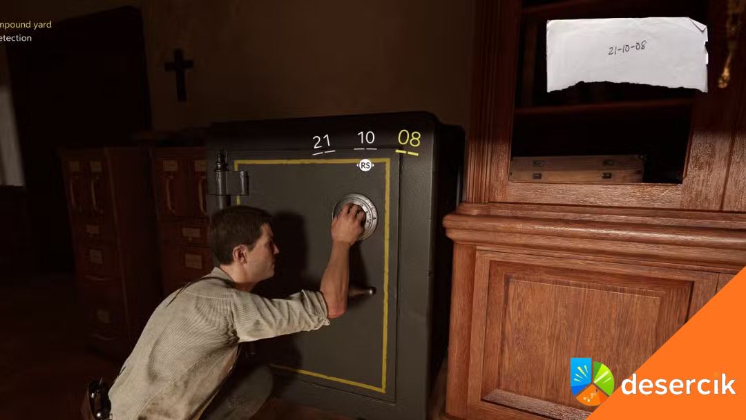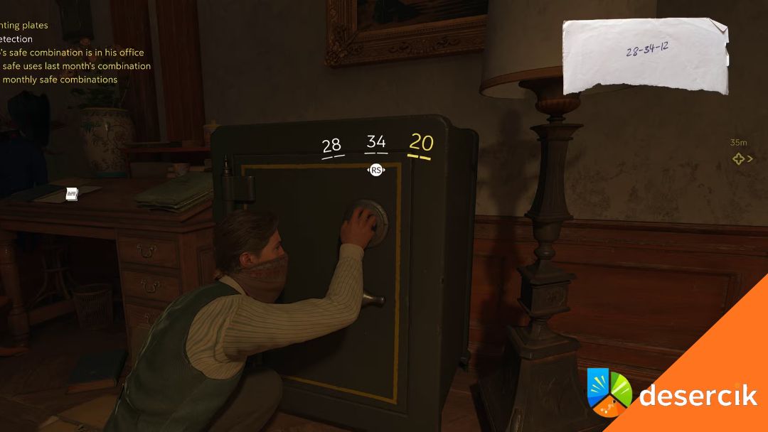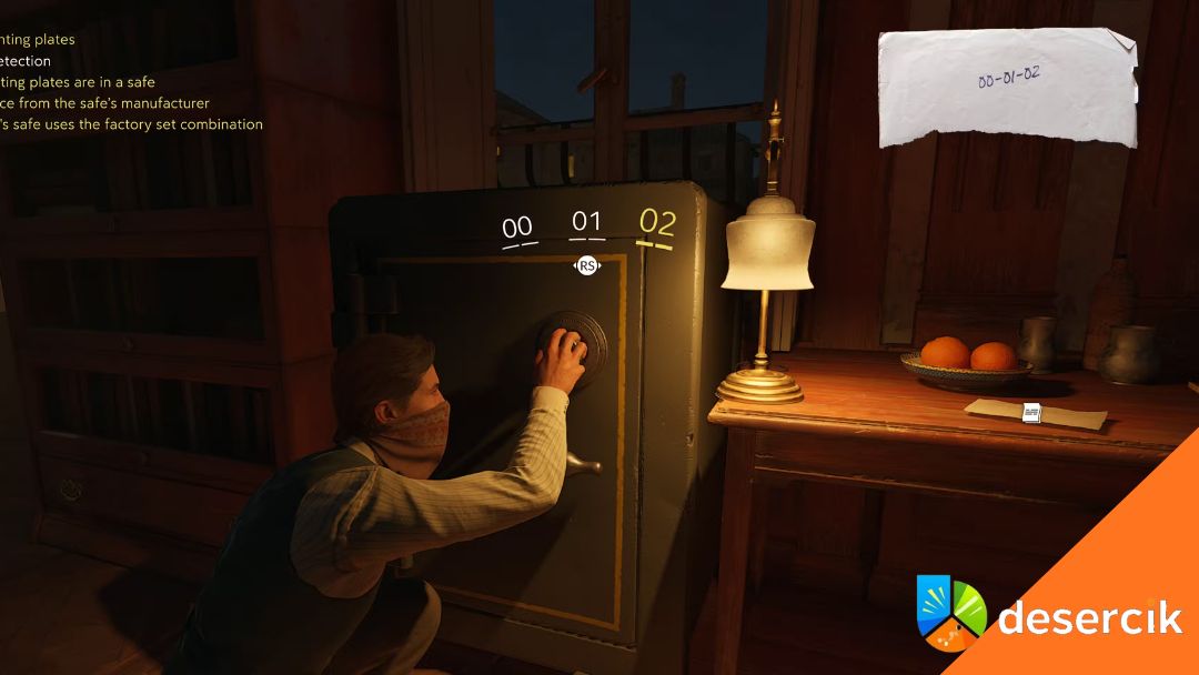 W większości lokacji znajdziesz gdzieś w pobliżu kartki, notatki albo służbowe papiery z kodem. Każdy sejf ma sześciocyfrową kombinację, ale co ciekawe – gra wcale nie zmusza cię do jej odnalezienia. Jeśli lubisz kombinować sam i masz cierpliwość, możesz rozwalić sejf metodą „na słuch”. Właśnie tak zdobywa się trofeum „Salvatore’s Apprentice”, więc jeśli celujesz w komplet osiągnięć, lepiej otworzyć przynajmniej jeden sejf zanim podniesiesz kartkę z kodem.