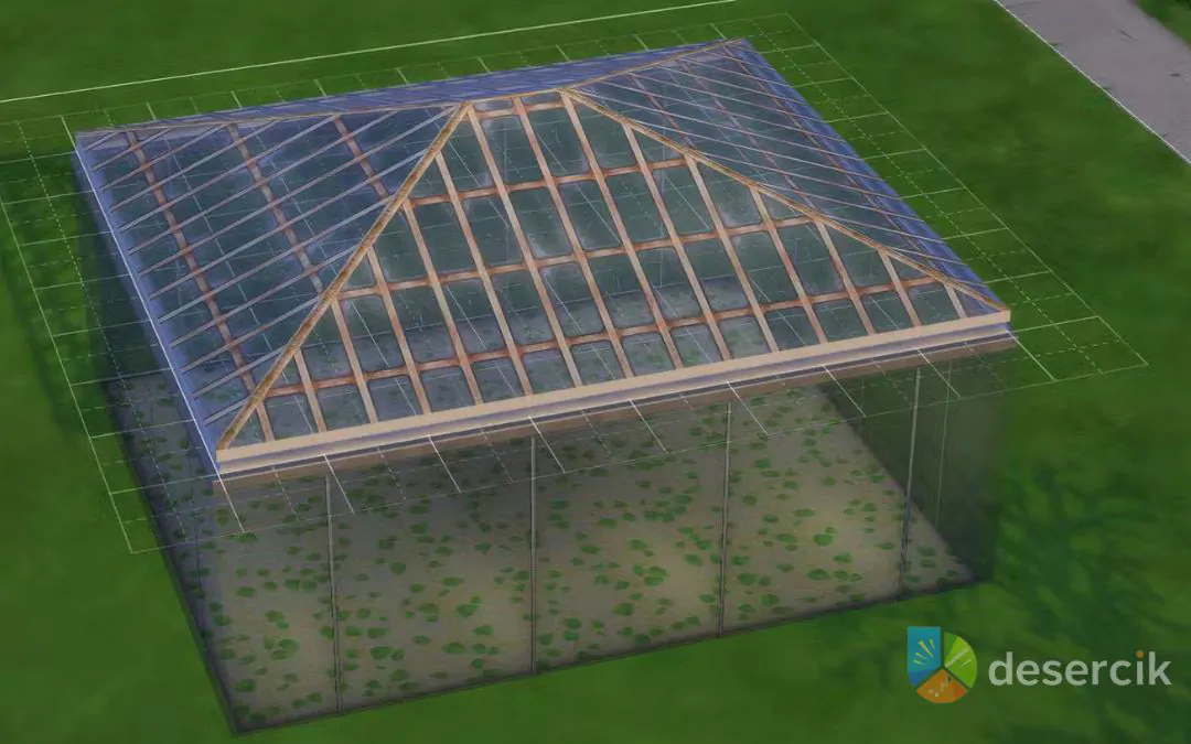Opcja znajduje się w sekcjach wzorów ścian i dachów, a wybór paneli jest naprawdę szeroki – od minimalistycznych tafli bez ram po ozdobne konstrukcje. Co ważne, ich cena jest symboliczna, więc nie trzeba wydawać fortuny, by zbudować imponującą przeszkloną przestrzeń.