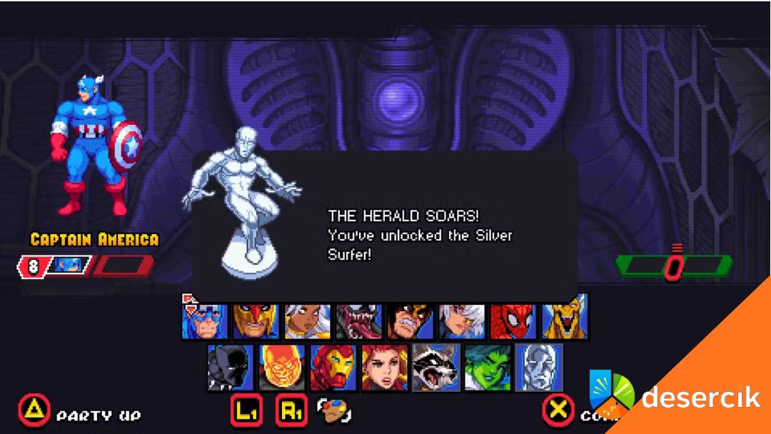 No i przechodzimy do bohatera, którego wielu graczy uważa za najbardziej kompletnego w całej grze. Silver Surfer odblokuje się dopiero po przejściu misji numer dwanaście – Free the Eater of Worlds. W tym etapie pojawia się kilka razy jako miniboss, a później czeka cię jeszcze jedna, mocniejsza walka na koniec.