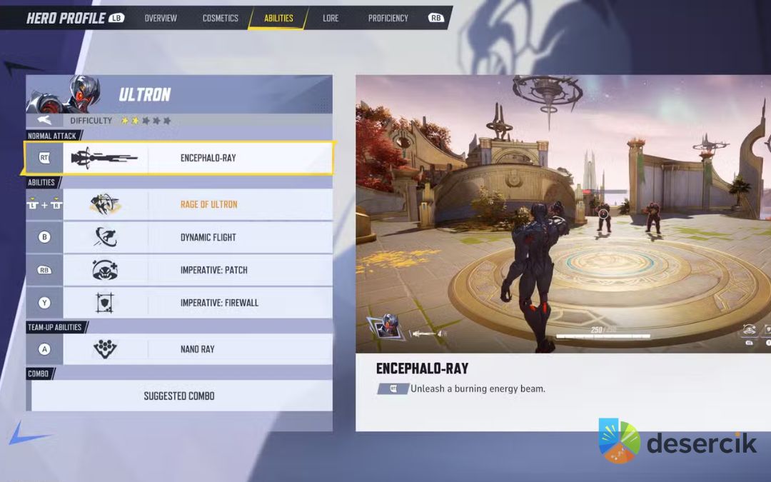 Rage of Ultron (Ultimate) – salwa dysponująca dwufunkcyjnością: zadawanie obrażeń + masowe leczenie. Sam Ultron również regeneruje HP przez cały czas trwania ulti.