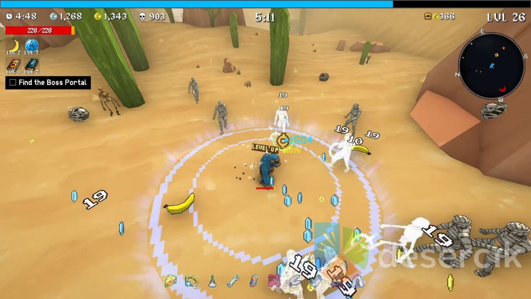 Boss może pojawić się losowo na mapie – czasem tuż obok gracza, a czasem na jej przeciwległym końcu. Dlatego strategia jest kluczowa: najlepiej wybrać szybką postać, jak Tony McZoom lub Calcium, żeby sprawnie przemierzać mapę, albo zwiększyć prędkość ruchu dzięki Agility Tome. Alternatywnie można zdecydować się na silniejszą postać, ryzykując, że nie dotrze do bossa w wyznaczonym czasie.