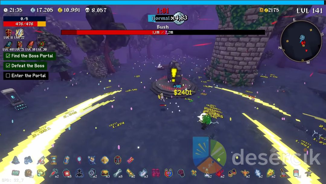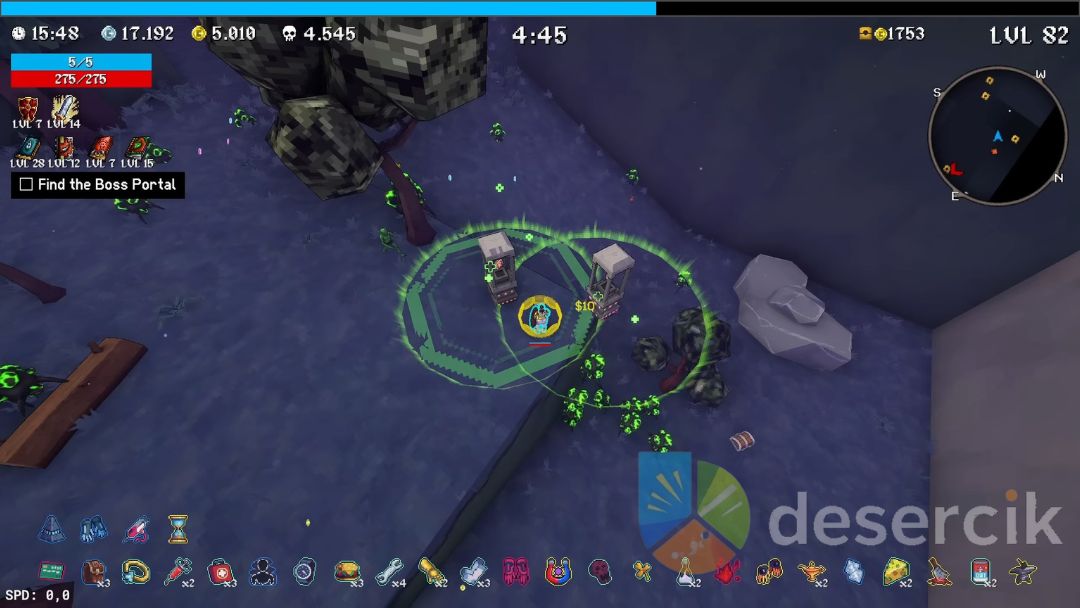 - Maksymalizuj każdą nagrodę przy level-up – priorytetem są Projectile, Attack Speed i Damage, aby móc szybko i skutecznie eliminować przeciwników.