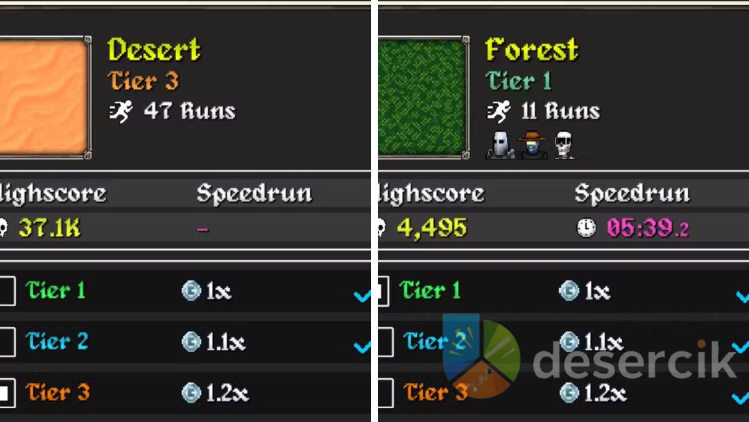 Aby odblokować Desert, musisz pokonać bossa w Tier 1 na mapie Forest dowolną postacią. Po tym odblokujesz dostęp do Tier 2 i możliwość przejścia przez specjalny portal do drugiej mapy. Z kolei Tier 3 odblokujesz dopiero po ukończeniu Tier 2. W trzecim Tierze trafisz do ostatniej strefy i zmierzysz się z finalnym bossem, który jest ostatecznym testem twoich umiejętności.