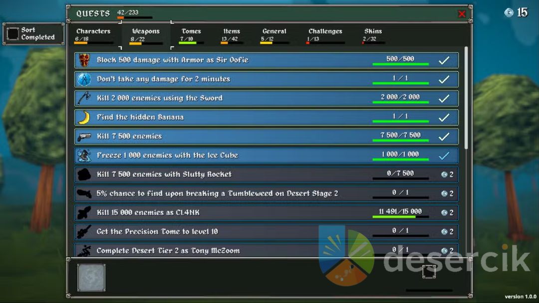 - Katana – 5% szansy po zniszczeniu tumbleweeda na Desert Stage 1.