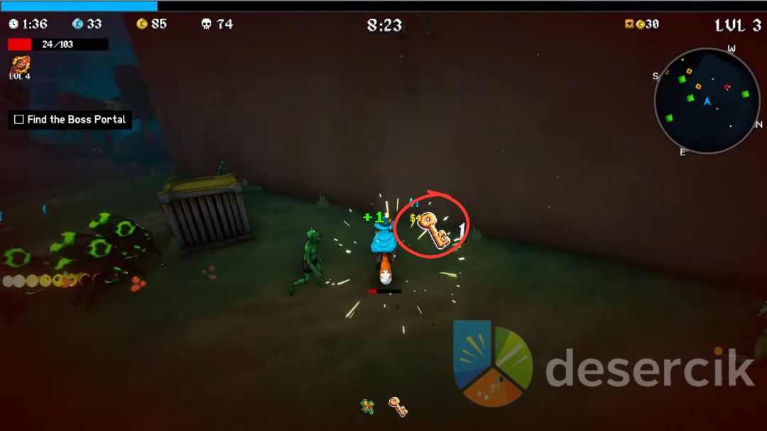 Podczas jednej z run w Lesie musisz natknąć się na Złoty Klucz, który pojawia się losowo na ziemi. Po jego podniesieniu zostaje dodany do Twojego ekwipunku i można przystąpić do kolejnego etapu – odnalezienia klatki Monke.