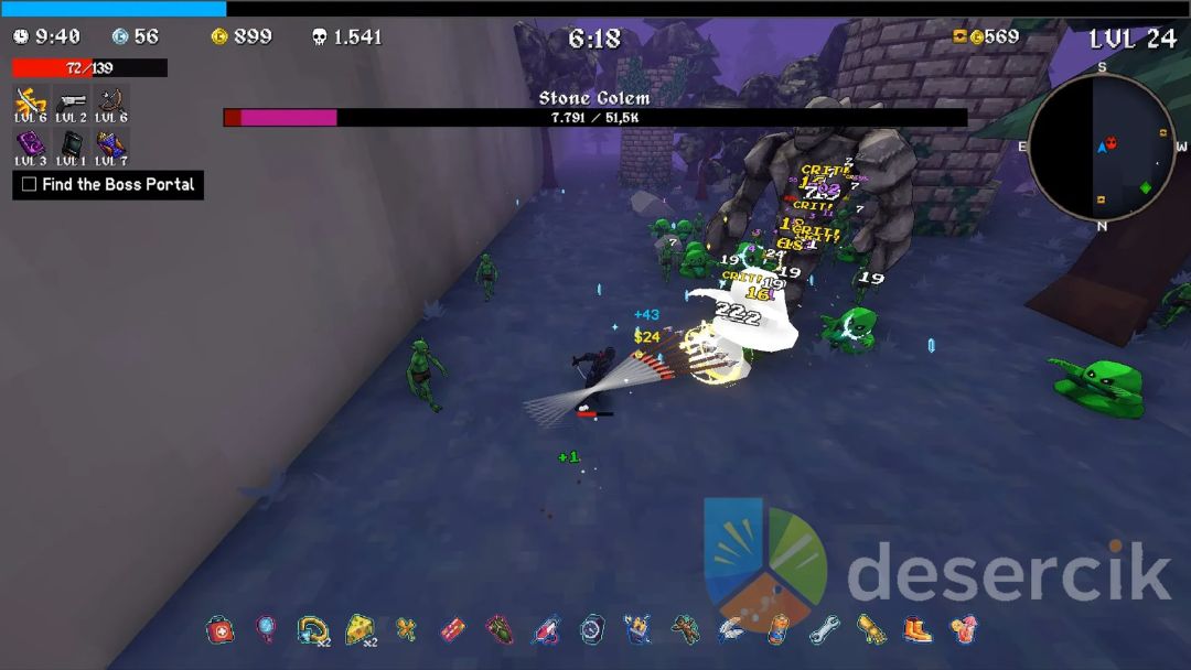 Hordy wrogów w Megabonk mogą szybko przytłoczyć, dlatego ważne jest łączone użycie broni wręcz, dystansowych i AoE, aby kontrolować teren i nie dać przeciwnikom zbyt wiele przestrzeni.