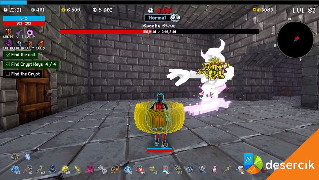 Cała walka opiera się na jednym założeniu: nie możesz dać się trafić ani razu. Nie ma tu miejsca na tankowanie czy leczenie. Jeśli Spooky Steve cię dosięgnie – run jest skończony.