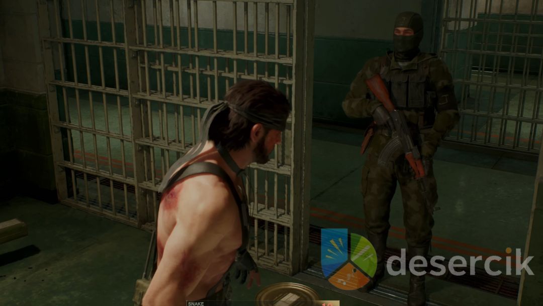 Jeżeli nie udało Ci się wyłapać kodu z cutscenek, możesz zdać się na kontakt z pilnującym strażnikiem. Od czasu do czasu wrzuci on przez kraty rację żywnościową. Możesz ją podnieść i odrzucić z powrotem na korytarz. Strażnik za każdym razem podniesie puszkę i sam ją zje. Jeśli powtórzysz ten manewr kilka razy, pojawi się scenka, w której pokaże on Snake’owi zdjęcie swojej rodziny. Na odwrocie fotografii widnieje kod potrzebny do otwarcia drzwi. To sposób fabularny, narracyjny, który pięknie wpisuje się w klimat serii i daje dodatkowy smaczek.