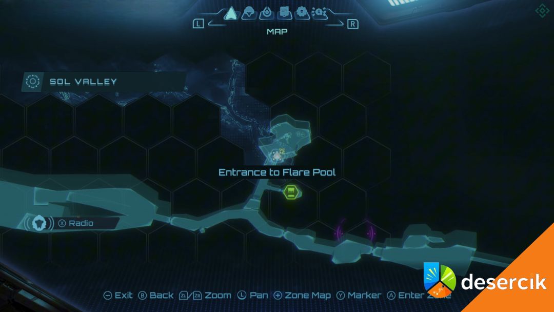 Po wejściu do Flare Pool użyj Vi-O-La na spinnerze, aby dotrzeć do głównego wejścia. Ścieżka prowadzi do cutsceny, w której Samus próbuje przejść przez most, ale tajemnicza postać – prawdopodobnie Sylux – powoduje jego zawalenie. Nie możesz jeszcze przejść przez lawę, więc zostajesz zmuszony do opuszczenia Flare Pool.