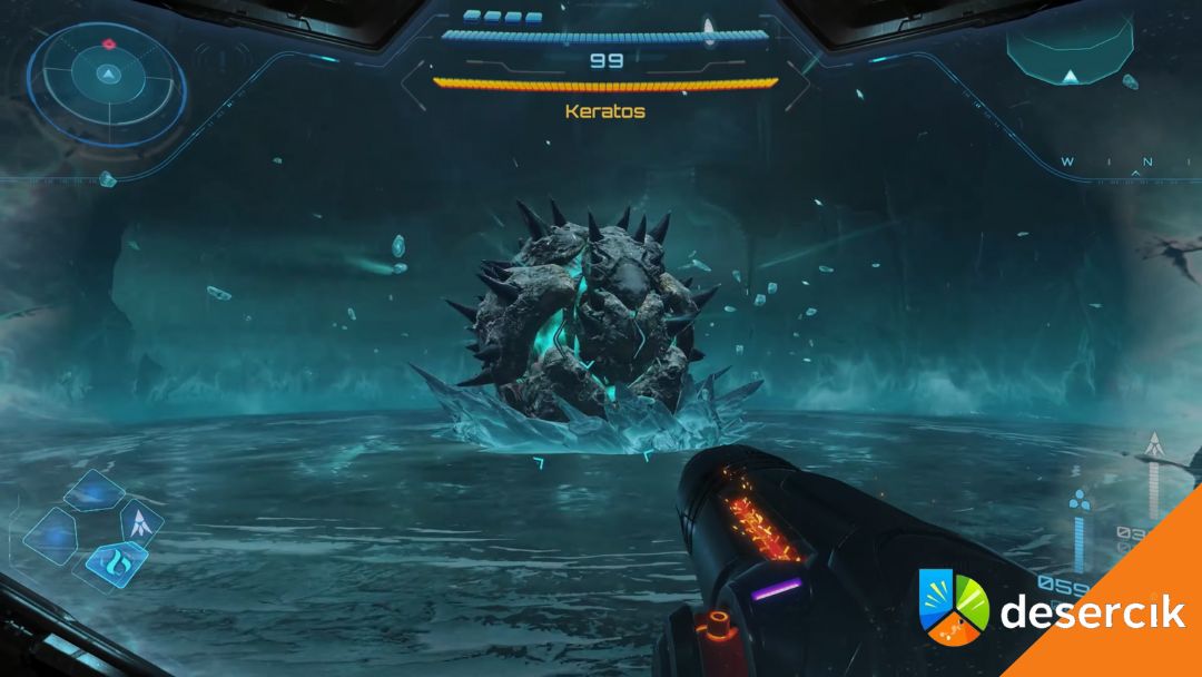 - Faza druga: niszcz kule na głowie bossa i uderz w język, aby zadawać mu obrażenia. Po jego upadku aktywuj Psychic Visor, naładuj Psychic Beam i skieruj go w gardło bossa, by trafić kulę wewnątrz.