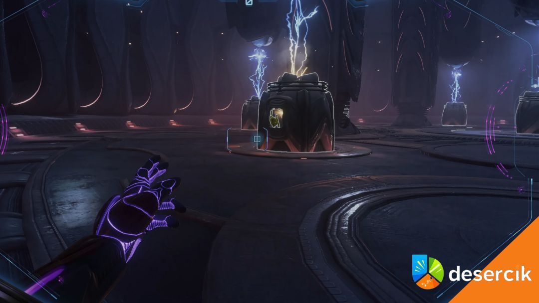 Kiedy dotrzesz do Collapsed Catwalk, użyj Psychic Grapple, aby przejść przez pomieszczenie. Następnie idź ścieżką prowadzącą do pokoju wypełnionego Lamorn power cells. Na zachodniej stronie znajdziesz uszkodzoną komórkę – zeskanuj jej pokrywę i użyj Grapple Lasso, aby ją zdjąć. Dzięki temu Thunder Chip stanie się dostępny, a interakcja z nim pozwoli Ci go zebrać.