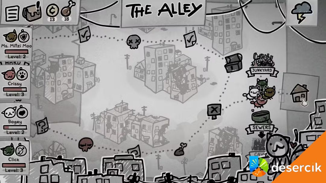 Przed zakończeniem tury kliknij, gdzie ma patrzeć kot – jeśli jego plecy są odsłonięte, wróg może zadać większe obrażenia. Każdy ruch powinien korzystać z całego zespołu, bo jeden błąd może skończyć się śmiercią twojego kota.