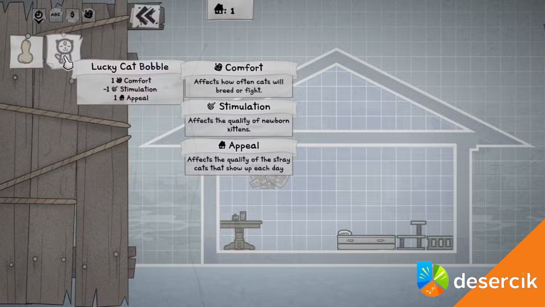 Po przejściu odpowiedniej liczby runów w regionie Caves odblokujesz NPC Baby Jack, który sprzedaje meble podnoszące statystyki kotów: