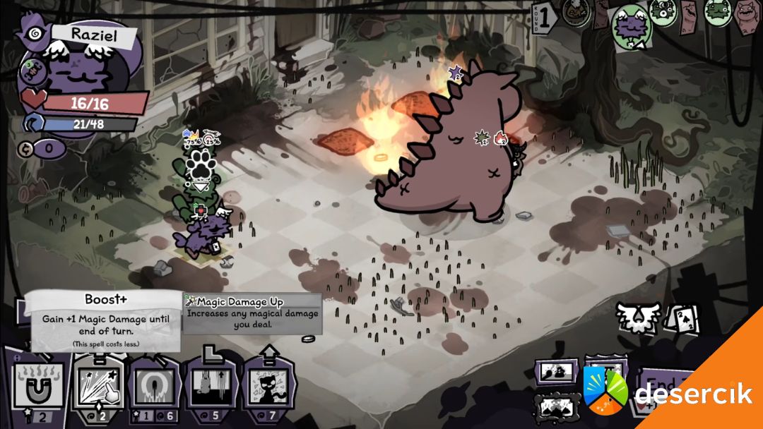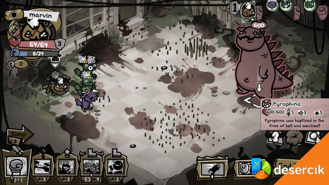 Walka z Pyrophiną wymaga trochę planowania, ale jeśli dobrze rozdzielisz role między kotami i zadbasz o odporności, gigantyczny kaiju-kot wcale nie będzie taki straszny.
